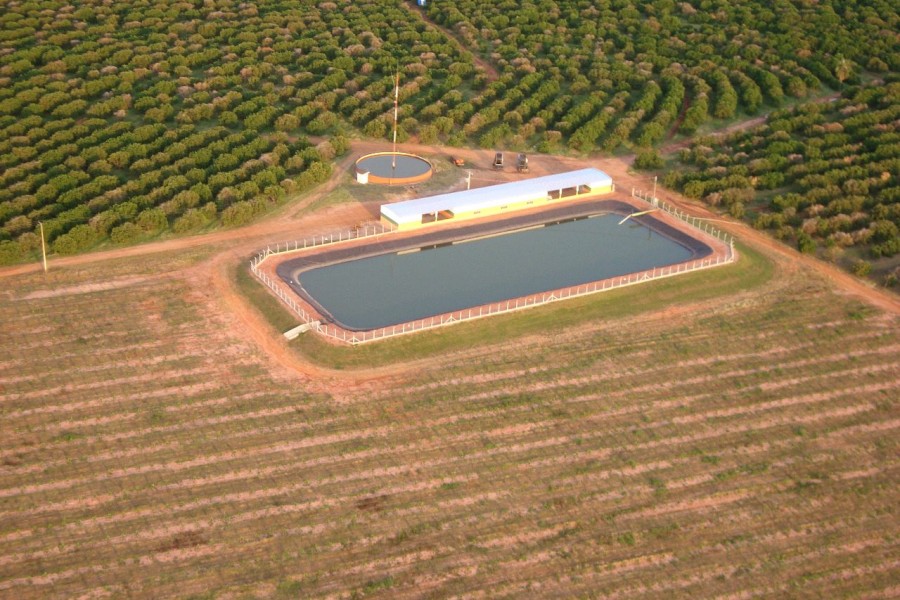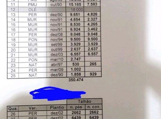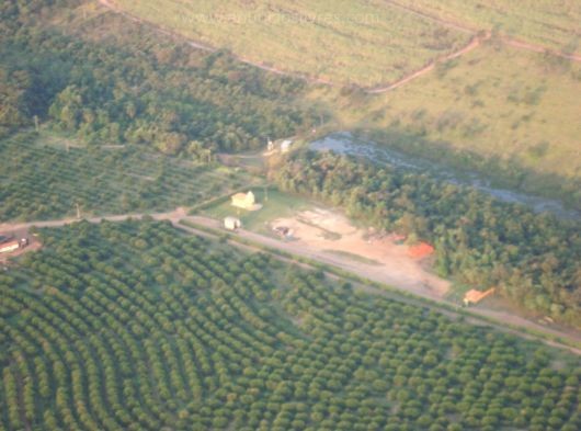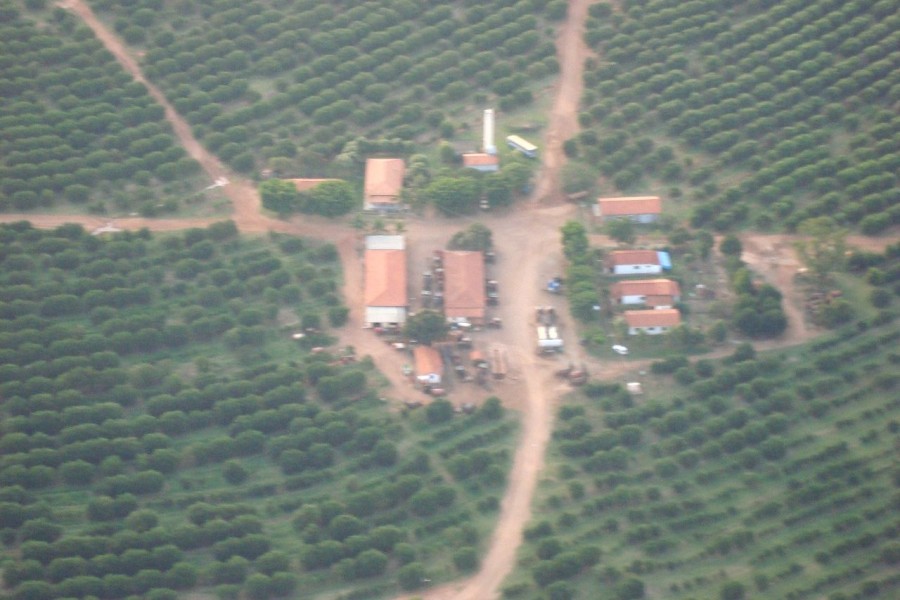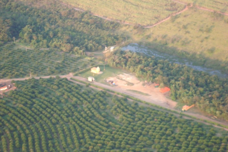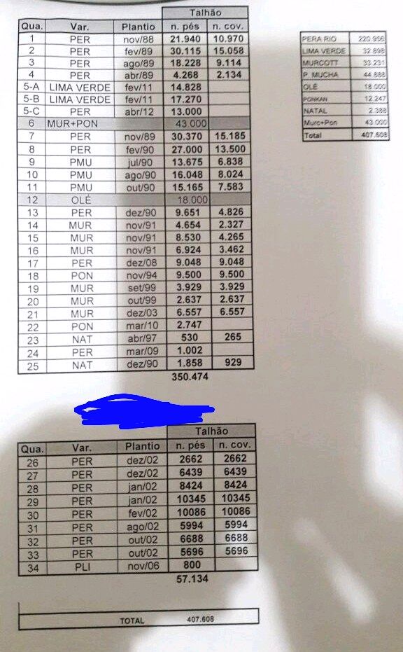 São aproximadamente 500 alq.sendo 100 de reserva com produção de cerca de 900 a 1milhao de caixas de laranja na produção principal aqui no estado de São Paulo ao preço de R$ 110 milhões de reais.