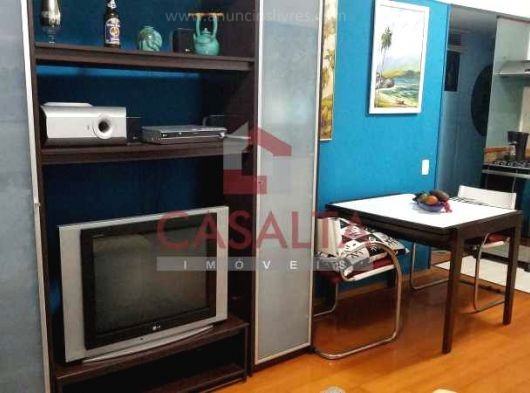 Edifício Residence Service com portaria 24h, controle de acesso, piscina, academia, sauna, lavanderia, vaga para visitantes. O apartamento está totalmente mobiliado, é composto por sala com acesso a varanda, cozinha integrada, 2 dormitórios, banheiro social e 1 vaga de garagem na escritura. Serviço de arrumadeira 2 vezes na semana, internet TV a cabo