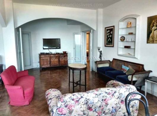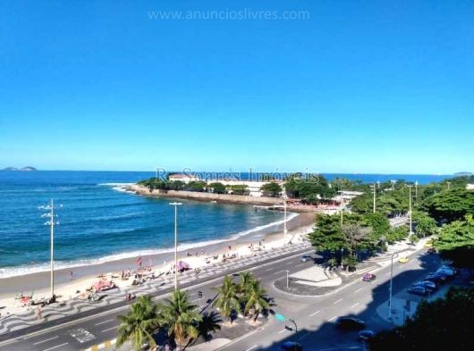 Frontal mar. Localizado no posto 6. Andar alto. Composto por hall de entrada, ampla sala de estar, varanda interna, sala de jantar. 4 quartos com armários, 2 banheiros sociais, copa-cozinha com área de serviço e dependência completa. Garagem na escritura. Prédio com portaria 24 horas sem lojas