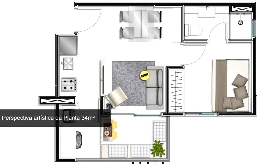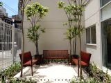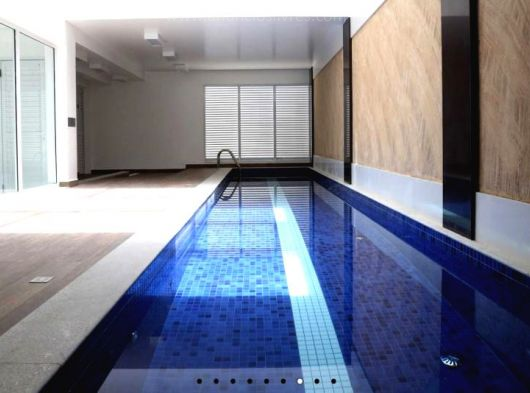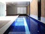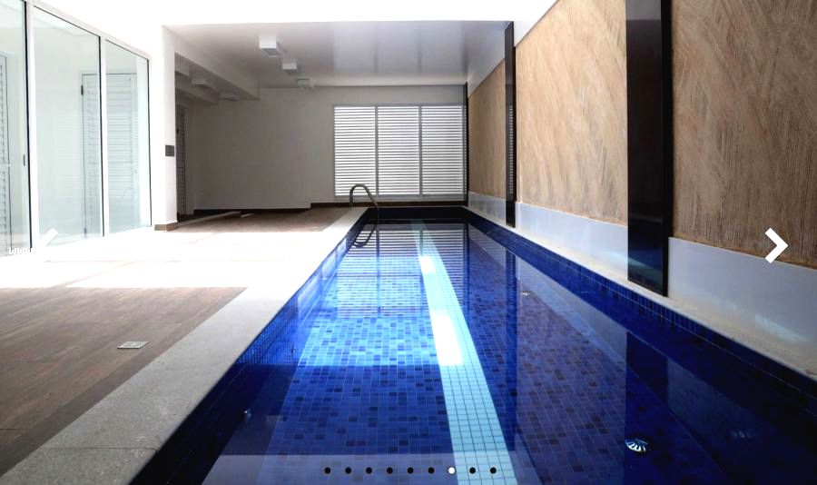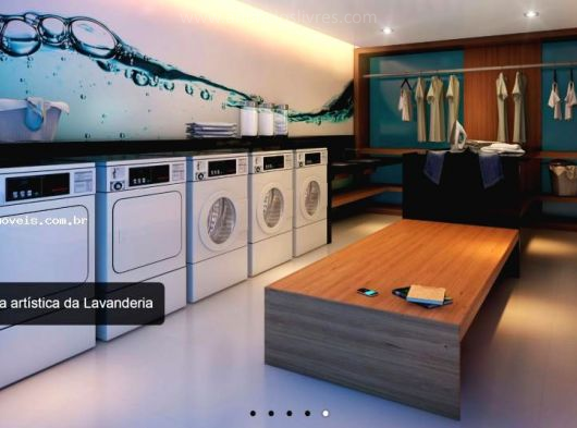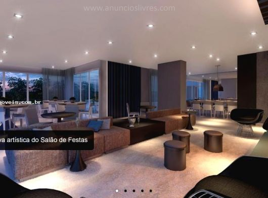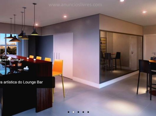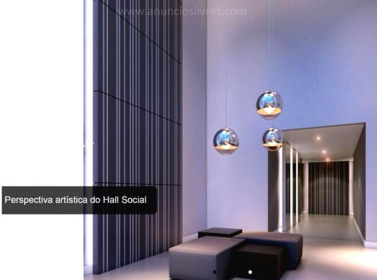 Edifício com pé-direito duplo com hall social, terraço descoberto, sauna, piscina coberta, fitness center, sauna, lounge com espaço Gourmet e lavanderia.
