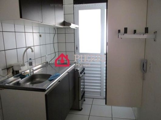 sala 2 ambientes com sacada, cozinha com armários planejados, banheiro, lavanderia, 01 vaga.