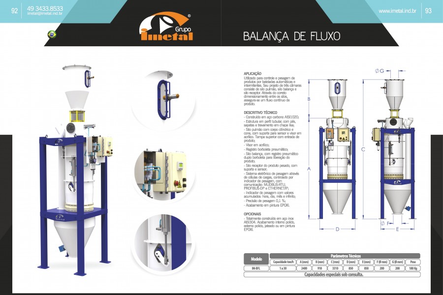 Utilizado para controle e pesagem de produtos por bateladas automáticas e intermitentes. Seu projeto de três câmaras consiste de silo pulmão, silo balança e silo receptor. Através do correto dimensionamento entre os silos, assegura-se um fluxo contínuo de produto.