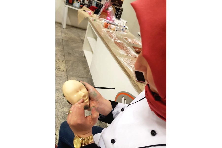 Eu faço os bolos de perfil, imagem, criação artística, desenhos infantís e exc.