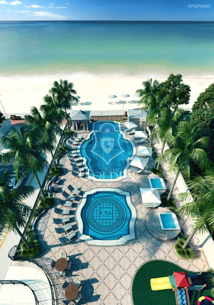 Área de lazer de frente para o mar, mobiliada e com paisagismo