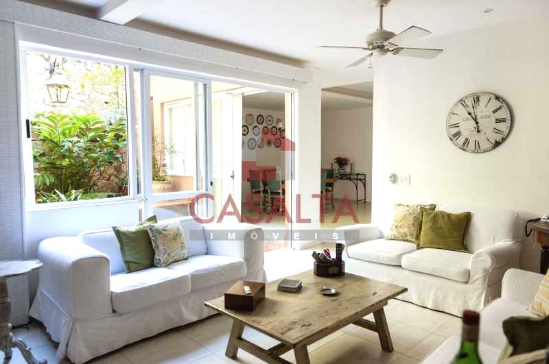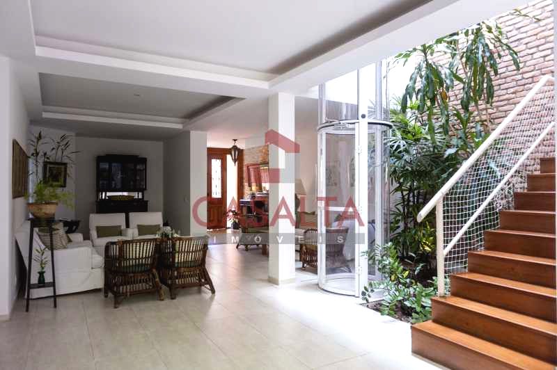 Humaitá!!! Um dos últimos oásis do Humaitá, rua sem saída com guarita de segurança 24 horas feita por empresa especializada. Casa com 537m² de área construída, maravilhosa vista para o Cristo Redentor e montanhas, composta de 3 andares, elevador panorâmico com baixo consumo de energia, sistema de câmeras de segurança, aquecimento solar para todo o imóvel, além de gás tradicional. No primeiro pavimento encontra-se uma ampla sala de estar e jantar, sala de TV com vista para o pátio interno com lago de carpas, despensa, lavabo, cozinha e dependências completas. No segundo pavimento encontram-se 4 suítes, sendo a master com varanda, closet e sacada, escritório, lavanderia e casa de caseiro com entrada independente. No terceiro pavimento encontra-se ampla sala de TV e música, banheiro social, bar em granito, cozinha gourmet equipada com cooktop, forno à lenha e churrasqueira. Piscina circundada por deck de madeira com hidromassagem. Duas vagas de garagem.
