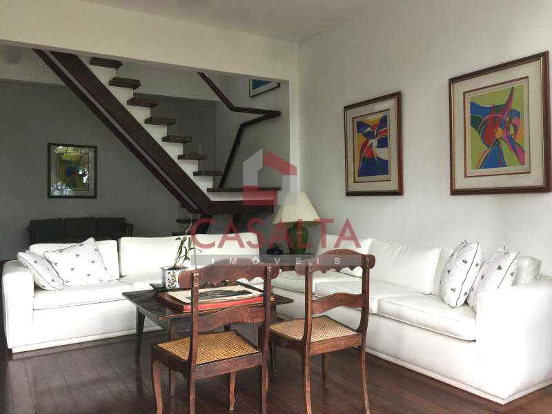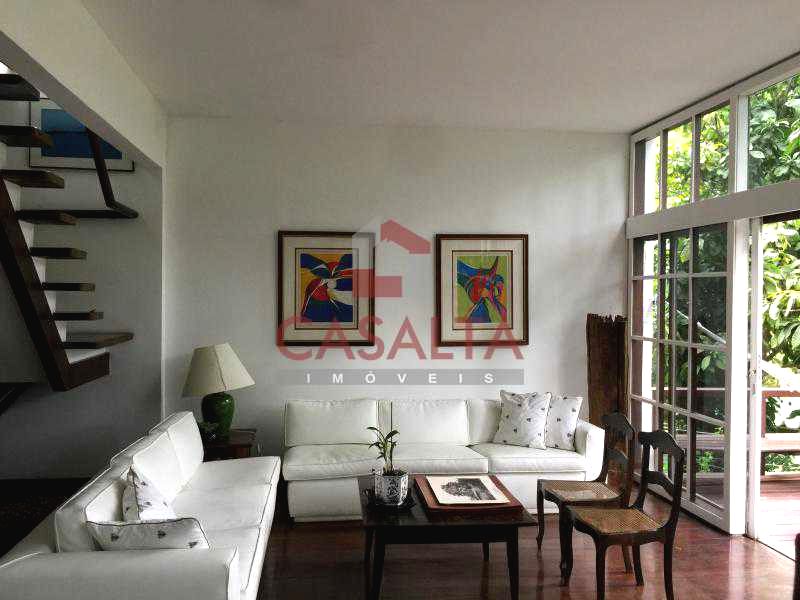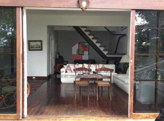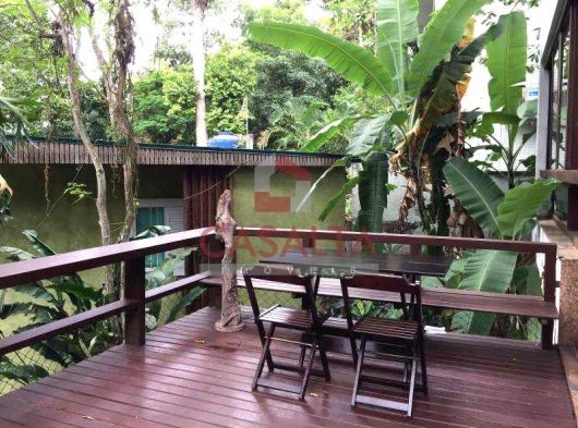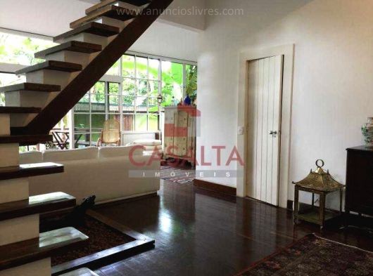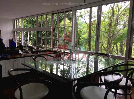 SÃO CONRADO!!! No coração da Mata Atlântica, casa em condomínio fechado, totalmente integrada a natureza. A sensação de estar na serra, encontra-se nesse pequeno paraíso. Composta por dois pisos sendo o primeiro com um grande hall de entrada, um lavabo, três salas integradas com acesso a um varandão, cozinha com área de serviço fechada e aberta, um quarto de funcionários e acesso lateral para a garagem. No segundo piso por acesso a escada flutuante de madeira, uma sala comum de TV, três suítes sendo uma com uma com uma pequena área aberta e um quarto. Garagem com capacidade pra 4 carros, condomínio com segurança monitorada 24 hrs.