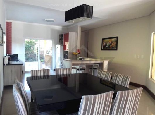 CASA EM CONDOMÍNIO VALE DOS LAGOS - TERRENO COM 1.470 MTS² - ÁREA CONSTRUÍDA 540 MTS² - 4 DORM COM AR CONDICIONADO, 1 SUÍTE COM CLOSET E 2 QUARTOS COM SUÍE AMERICANA TODOS COM PORTA BALCÃO E PISOLAMINADO - COZINHA, SALA DE JANTAR COM LAREIRA E LAVABO INTEGRADO E COM AR CONDICIONADO - ÁREA DE LAZER 340 MTS² COM VISTA PARA O LAGO COM 2 CHURRASQUEIRA, FOGÃO E FORNO A LENHA, PISCINA E BANHEIRO - GARAGEM COBERTA PARA 6 CARROS E UMA ESTRUTURA DE 35 MTS² COM BANHEIRO E AR CONDICIONADO PODENDO SER UTILIZADO COMO SUÍTE, ESCRITÓRIO OU ESPAÇO PARA EMPREGADO - QUINTAL LOCALIZADO NOS FUNDOS COM 580 MTS² PLANO COM POMAR E QUARTO DE FERRAMENTA - LAVANDERIA COM 72 MTS² - PREÇO DE OCASIÃO