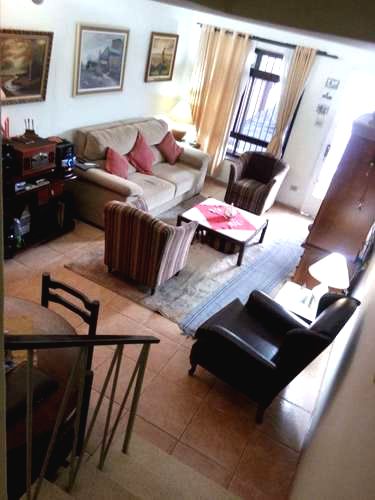 São 80m² - com 2 dormitórios sendo um com varanda e um banheiro social na parte superior, sala, cozinha, despensa, pequeno quintal com área de serviço, banheiro de serviço e depósito. São 2 vagas de garagem.