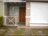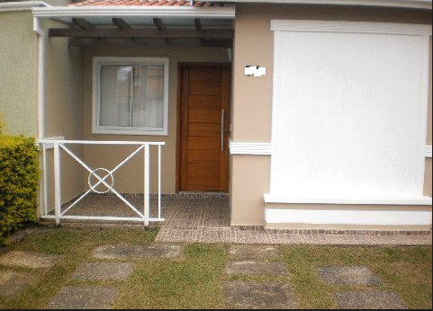 casa térrea dentro de condomínio, terreno com 140 m2, construção com 100 m2, 3 dormitórios sendo uma suite com box no banheiro, wc/social com box, sala de tv, copa, cozinha com armários, área gourmet coberta com churrasqueira, pia e lavanderia, quintal, frente descoberta sendo garage para 2 carros e uma moto, varanda coberta na frente.