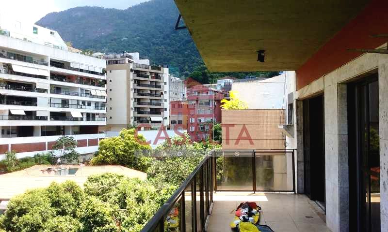 Local tranqüilo, com fácil acesso, perto de todo o bom e variado comércio do Jardim Botânico e próximo ao Parque Lage, Clube Militar, Hípica, Clube Piraquê e Lagoa Rodrigo de Freitas. Rua com segurança 24 horas. Boa Cobertura Duplex com vista ampla, parcial Lagoa e Dois Irmãos, composta no 1º piso por varandão, salão em vários ambientes, lavabo, três quartos sendo dois suítes, copa-cozinha e dependência de empregada acesso ao 2º piso por escada linear chegando a amplo salão, três quartos sendo dois suítes e terraço com vista. 2 vagas de garagem na escritura!