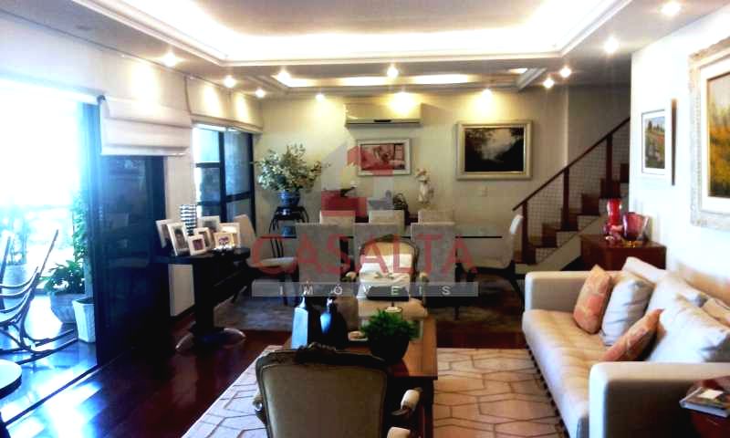 Rua Cupertino Durão! Localização privilegiada, junto ao bom comércio e centro gastronômico do bairro. Prédio de luxo, com apenas seis unidades e servido por portaria com expediente 24 horas e monitoramento por circuito interno de TV. Excelente cobertura duplex, legalizada, bem conservada, com planta circular e composta no 1º piso por amplo varandão, salão em vários ambientes, lavabo, circulação com rouparia distribuindo para quatro suítes, todas com bons armários embutidos, banheiros das suítes com ventilação natural, ampla copa-cozinha planejada, área de serviço e dependência completa de empregada. Acesso ao segundo por escada linear chegando em amplo salão com copa de apoio, lavabo, suíte máster com escritório e closet, varanda exclusiva, banheiro da suíte máster com banheira de hidro massagem, terraço interno e terraço frontal com ampla piscina e sauna. Vista para Cristo e prédios ao longe. Depósito individual no playground e quatro vagas de garagem na escritura!