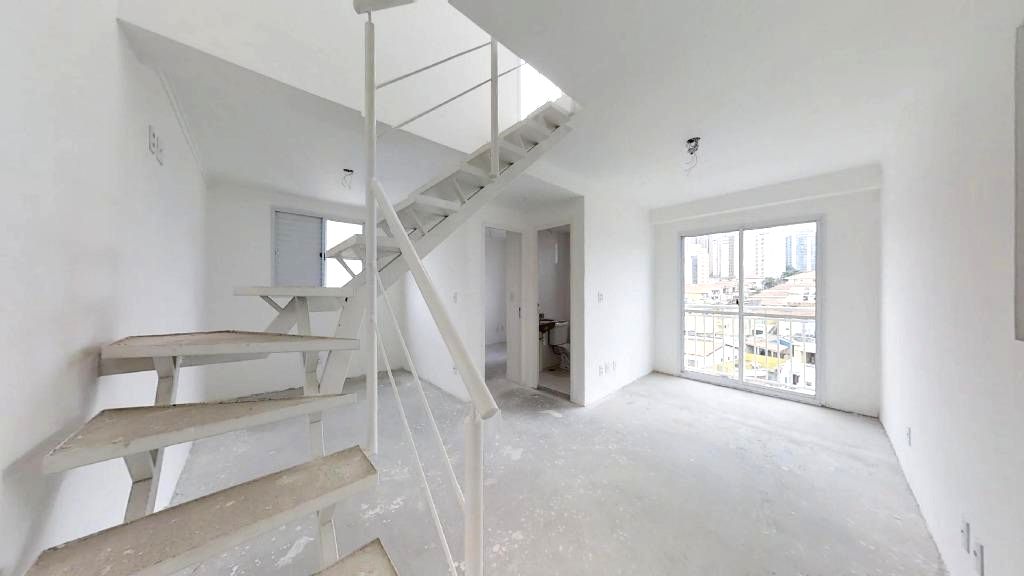 Unidade no contra piso, na configuração de sala ampliada com 2 Dormitórios (1 Suite), 2 vagas de garagem.