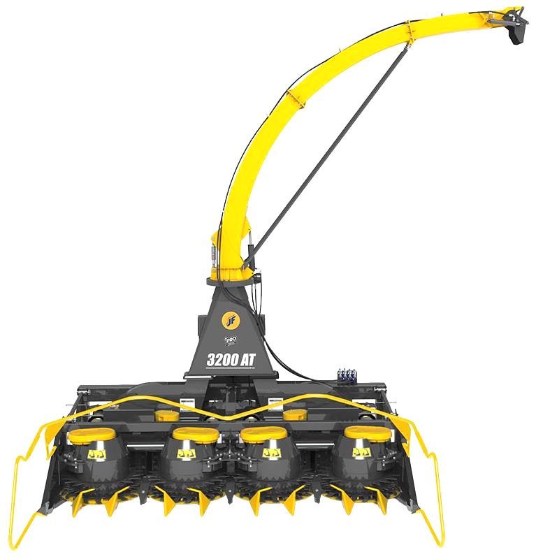 Colhedora de forragem de área total para cultura de verão e inverno (milho, sorgo, capim, cana, aveia, dentre outros), com 3,2 metros de largura de trabalho, equipado com 4 tambores recolhedores