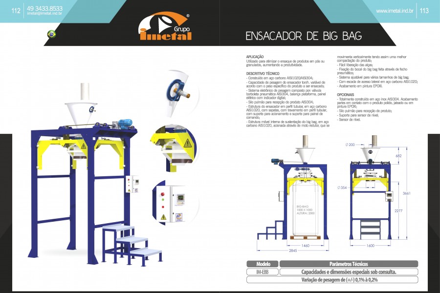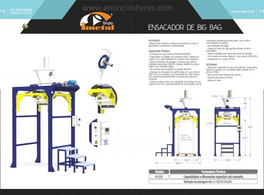 Utilizado para otimizar o ensaque de produtos em pós ou granulados, aumentando a produtividade.