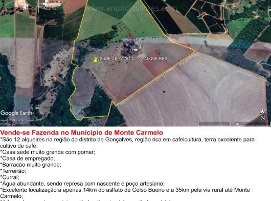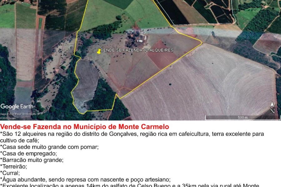 ende-se excelente Fazenda de 12 alqueires em região cafeicultora no Município de Monte Carmelo Mg.