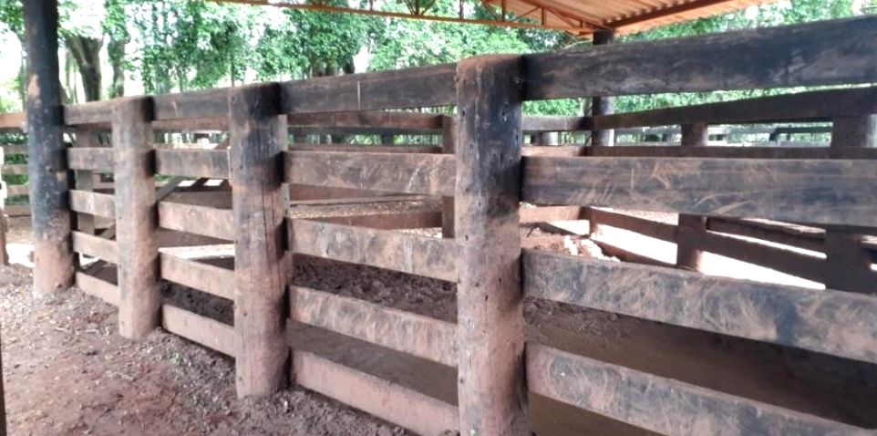 curral de tabua todo de aroeira com tronco brete e balança;
