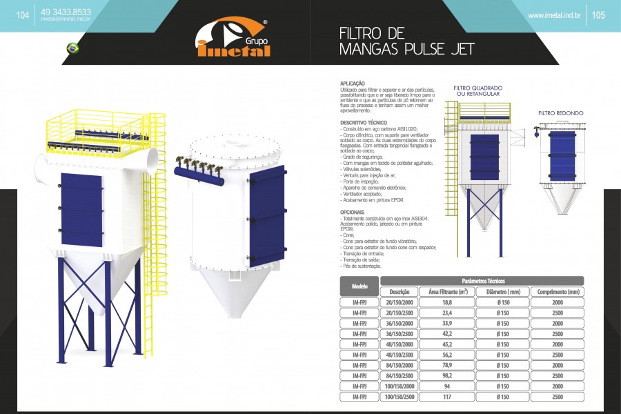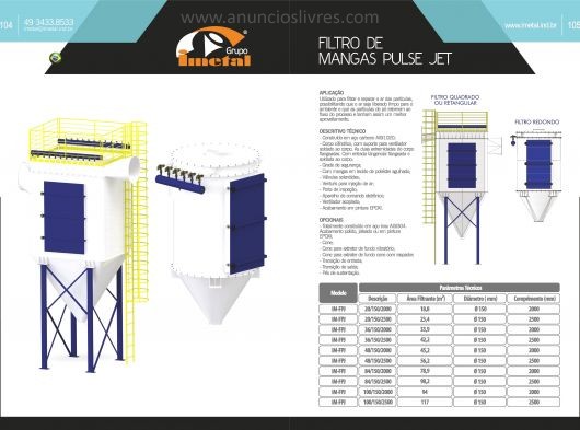 Utilizado para filtrar e separar o ar das partículas, possibilitando que o ar seja liberado limpo para o ambiente e que as partículas de pó retornem ao fluxo do processo e tenham assim um melhor aproveitamento.