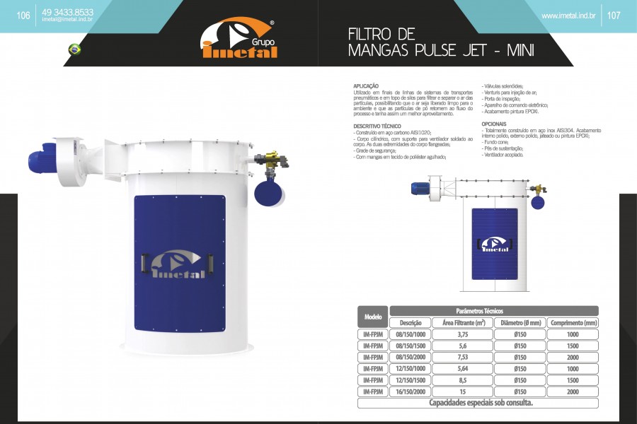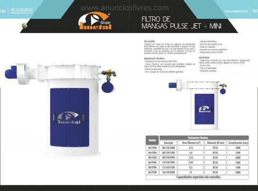 Utilizado em finais de linhas de sistemas de transportes pneumáticos e em topo de silos para filtrar e separar o ar das partículas, possibilitando que o ar seja liberado limpo para o ambiente e que as partículas de pó retornem ao fluxo do processo e tenha assim um melhor aproveitamento.