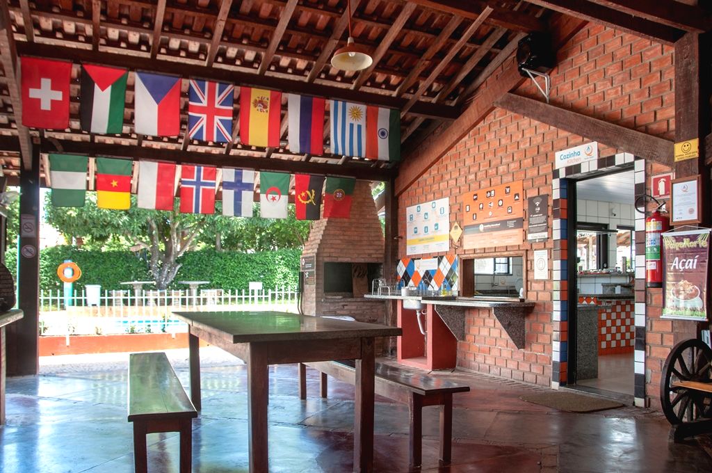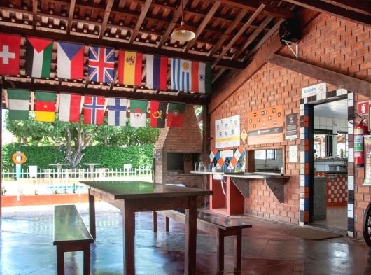 Salão de convívio = 110 m2 em estrutura de madeira de lei com