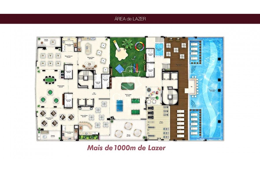 Ampla área de lazer, composta por: