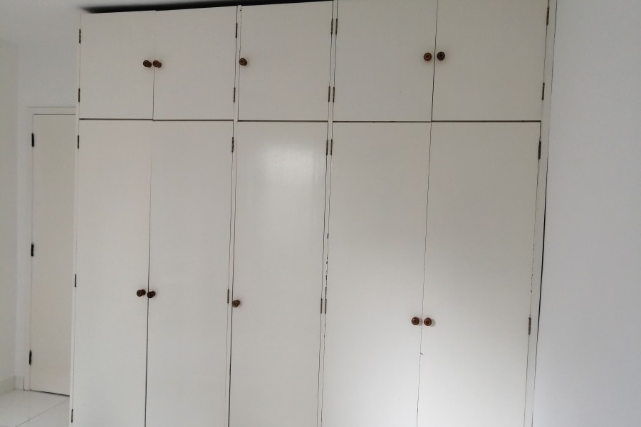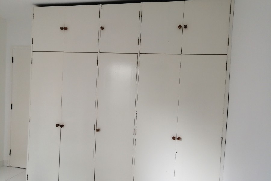 Tem armários no quarto,cozinha,