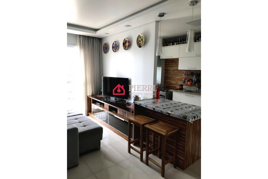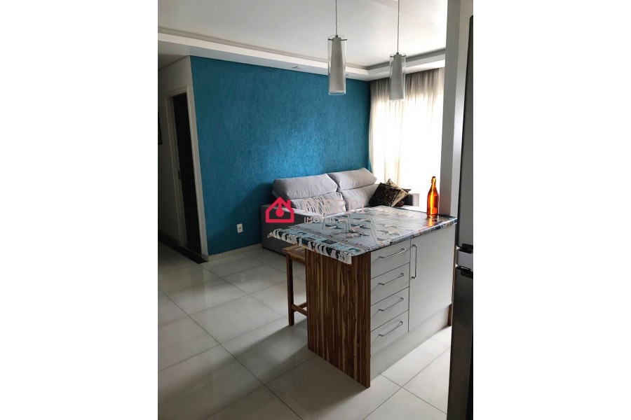 conta com sala 02 ambientes com sacada, cozinha com armários planejados, dormitório