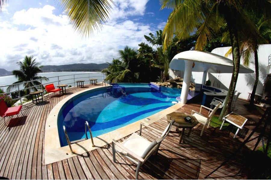 SALA DE GINÁSTICA TOTALMENTE EQUIPADA, SAUNA SECA COM 3 VESTIÁRIOS E CHUVEIROS INDIVIDUAIS, CASA DE CHÁ NO JARDIM PRINCIPAL DA CASA FORNO E COIFA VIKING, FORNO DE PIZZA PROFISSIONAL, FORNO A LENHA, LAREIRA, ELEVADOR PANORÂMICO SCHINDLER, DUAS ADEGAS, PISCINA COM VISTA PARA O MAR, DECK DE MADEIRA AO REDOR DA PISCINA, BAR INTERNO NA PISCINA, COM 5 ASSENTOS SUBMERSOS, CASA COM VISTA PANORÂMICA DA ORLA DO GUARUJÁ,