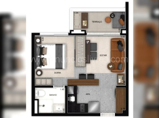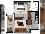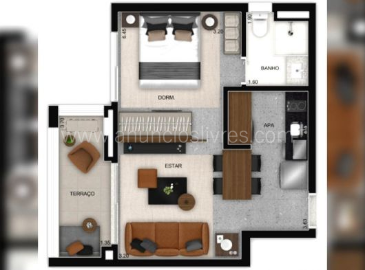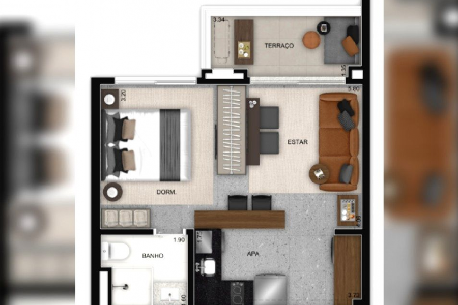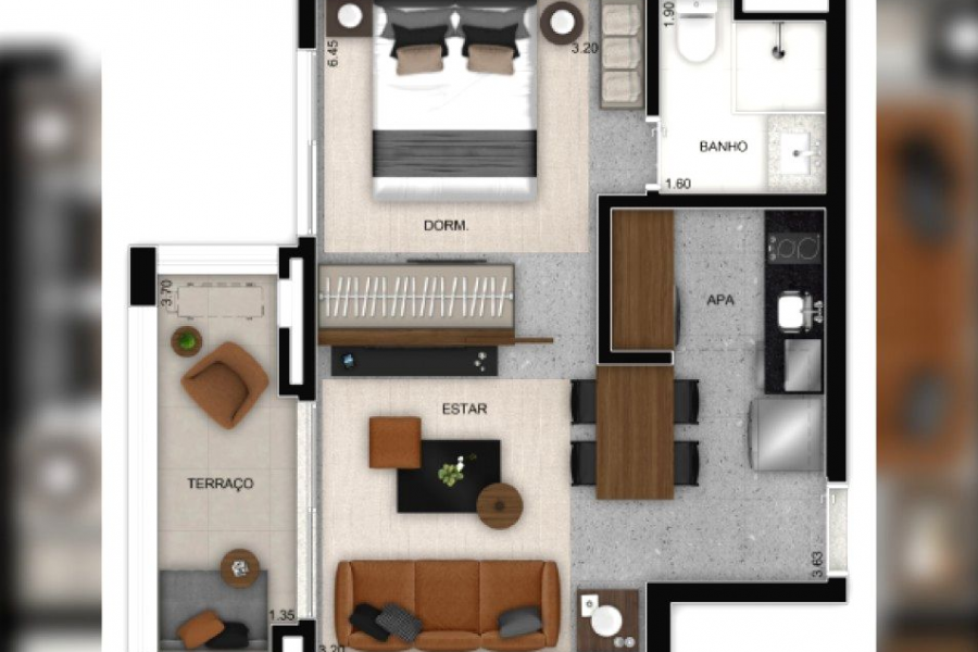 Área privativa do apartamento: 38,13m² 40,26m² 63,72m² 37,63m²