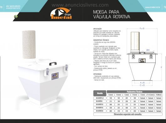 Utilizada para trabalhar como receptora de produtos que serão dosados em válvulas rotativas de passagens verticais instaladas em linhas de transportes pneumáticos.