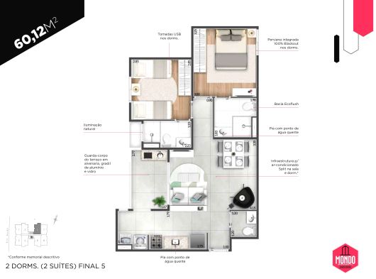 Número de Pavimentos: 11 pavimentos tipo / 12º lazer