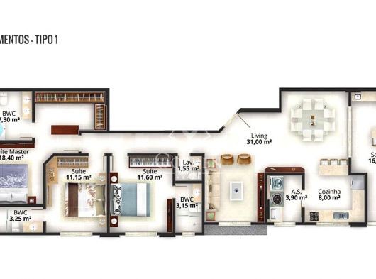 | M² | Área: 135.00 Área Privativa: 135.00 m² |