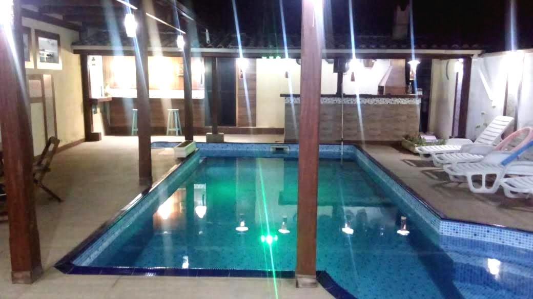 LINDA POUSADA COM 9 ACOMODAÇÕES (SUÍTES), SALÃO PARA CAFÉ DA MANHÃ, SALÃO DE JOGOS, PISCINA, AREA DE CHURRASQUEIRA, RECECPÇÃO E GARAGEM. UMA CASA CONJUGADA COM DUAS SUÍTES, SALA E COZINHA. 2 BANHEIROS PARA RECEPÇÃO.