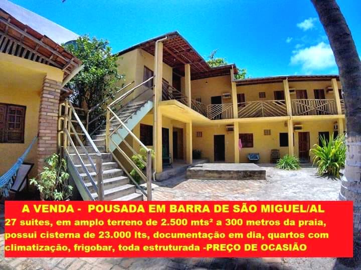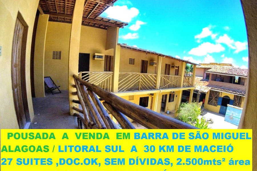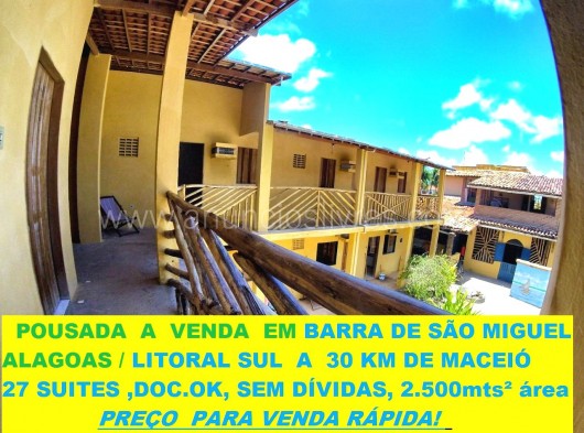 A VENDA - Ampla Pousada Rústica em Barra de São Miguel/AL . 27 Suites ( todas com climatização e frigobar), em terreno de 2.500 mts², a 300 metros da Praia. Totalmente documentada, com menor valor de venda da região.