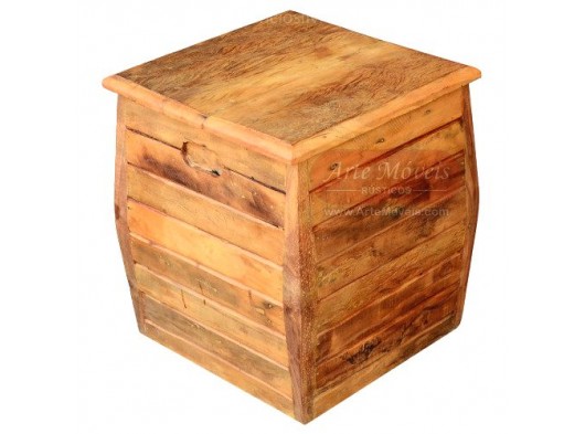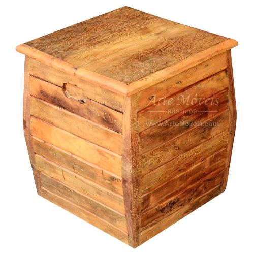 outras madeiras. O Puff Baú Rústico "Ripado" em Madeira de Demolição (Peroba Rosa) tem, portanto, a aliança da durabilidade, garantia e estilo que só os Móveis Rústicos da Arte Móveis Rústicos trazem, com a