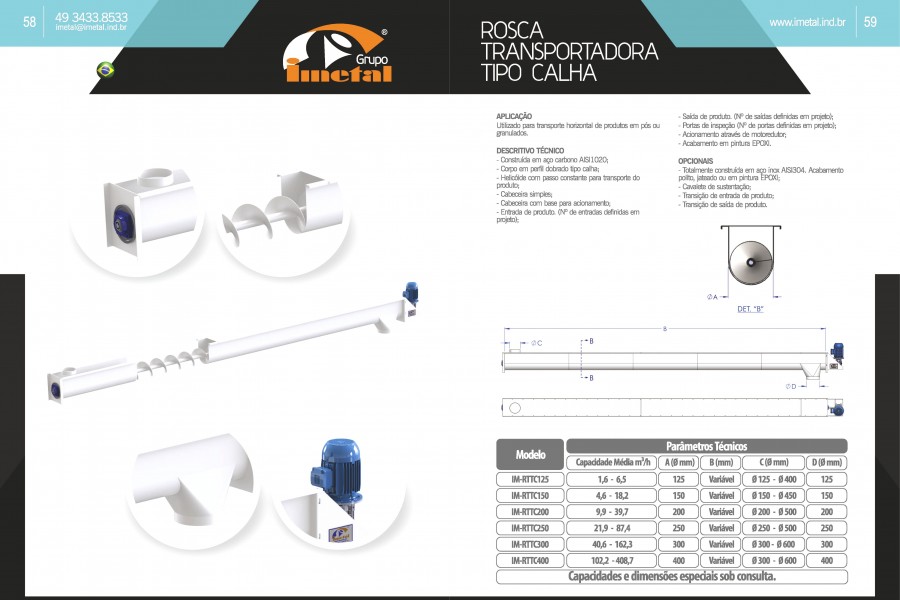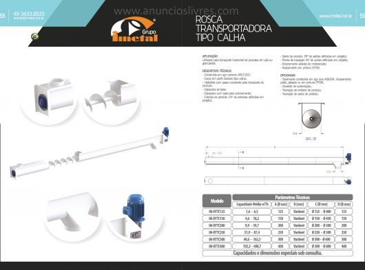 Utilizado para transporte horizontal de produtos em pós ou granulados.