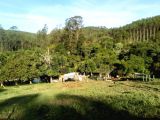 Casa com acabamento simples de alvenaria, sala, cozinha ampla, varanda, com escritura.