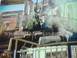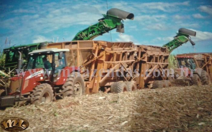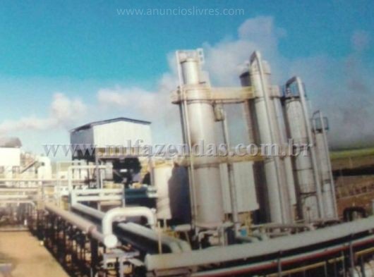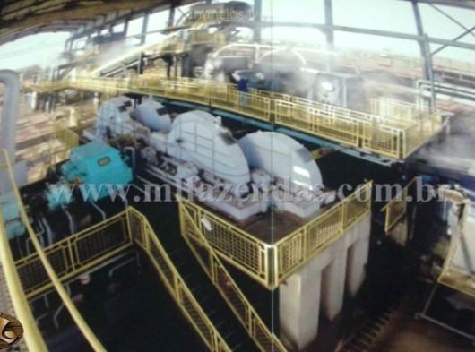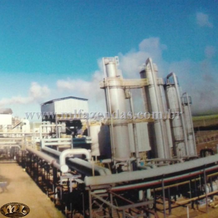 | 3.520 hect (727 alqueirão) Capacidade nominal de moagem: 130 ton/h Balança de pesagem para 120 toneladas – Toledo Barracão da Moenda: Um guincho hillo para 40 toneladas Uma ponte rolante de 15 toneladas com controle via radio frequência Mesa alimentadora 45° com monitoramento Uma peneira rotativa de 300m³ 4 ternos de moenda 30x48 com acionamento único Preparo de cana 54” Tres turbinas de 21 kg de pressão Automação no preparo e acionamento de motores Sistema de monitoramento donellis via circuito fechado Sistema de alimentação semiautomático Intertravamento a nível elétrico e automático das esteiras Tratamento de caldo: é composto por um decantador de 500 m³ com isolamento; sistema automático de dosagem de polímero e controle de pH; controle automático de retirada de lodo; três aquecedores de 250 m² de área com controle automático de vapor; sistema de preparo de cal, dois regeneradores caldo/caldo, duas caixas de preparo de polímero de 3m³ cada, três peneiras estáticas para retenção de bagacilho, dois trocadores de calor de mosto, Alfa Laval, modelo MX 25 BFMS, volume 447,8 litros. Dois filtros rotativos (10x20)” para moagem de 100 ton de cana hora/h cada um; um medidor de vazão de caldo misto, caldo clarificado, água de imbebição, lodo, vinho a destilar, vinho a centrifugar e água bruta. Uma caixa de lodo de equalização e mistura de bagacilho. Fermentação: Sete dornas de 450 m³ cada,s endo uma volante; cada dorna possui um trocador de calor modelo T20 MFM Alfa Laval, volume 385 litros com sistema automático de injeção de anti-espumante; todas as dornas são fechadas e com sistema de recuperação de gases, controle automático de temperatura, Três cubas de 120 m³ cada, três centrifugas Alfa Laval de 95 m³/h, sistema de dosagem de acido sulfúrico é composto de três tanques de aço inox de 250 litros de capacidade, localizados em cima das cubas e um tanque de estoque em aço carbono com capacidade de 10.000 litros localizado no piso e com bacia de contenção. Destilaria: Um aparelho de álcool hidratado com capacidade nominal de 400 m³ por dia; controle automático de produção a distancia, um aparelho de álcool anidro com capacidade de 200 m³ por dia, um densimetro marca Metroval para controle da coluna de destilação. Um densimetro marca Dwyller para controle da coluna de anidro, sete condensadores para resfriamento, um tocador tubular para aquecimento de vinho, um decantador de ciclo com capacidade de 10 m³, dois medidores de vazão para controle de produção, dois medidores de vazão após tanque medidor, Um trocador regenerador (água/álcool a desidratar). Tancagem: quatro tanques medidores de produção de álcool de 23 m³, dois tanques para óleo fúsel, sendo um para estoque e outro para lavagem do óleo capacidade 23 e 30 m³. um tanque de ciclo com capacidade de 30 m³ e dois tanques de 10.000 m³ para estoque de álcool. Tratamento de Água: Estação de tratamento de água compacta com capacidade de 150 m³/h. O sistema é composto por fios dois floco decantadores e um filtro de areia. Um medidor de vazão na entrada do floco decantador; três caixas para dosagem de produtos químicos com bomba dosadora, um tanque spray para resfriamento das águas. Caldeira: Uma caldeira com capacidade de produção de 120 toneladas de vapor por hora; controle operacional automatizado a três elementos, incluindo esteira de retorno de bagaço, sistema de lavagem de gases completo; sistema de dosagem de produtos químicos com quatro tanques de polietileno, capacidade 250 litros, dotados de bombas dosadoras individuais, consumo de vapor em torno de 65 ton/h, produção de bagaço 35 ton/h, produção de bagaço 35 ton/h, sobra de bagaço em torno de 6 ton/h. Geração de energia: dois geradores de 1750 KVA cada, marca Mausa, Vinhaça: Um tanque de 12.000 m³ para contenção de vinhaça, impermeabilizado, a vinhaça é encaminhada por meio de tubulações ate os reservatórios de distribuição e destruída através de conjunto moto bomba, fornecimento de energia e rede elétrica própria, 15 km de rede. Águas residuáreas: três células de decantação de águas, um tanque de decantação de águas de lavagem de cinzas da caldeira, uma peneira rotativa para separação das cinzas. Automação: Grau de automação geral da usina – 75% Segurança: Esta de acordo com as normas exigidas pelo Ministério do Trabalho, sistema completo de combate de incêndio, NR 13 para caldeira e vasos de pressão, NR 10 eletrica, espaço confinado, CIPA. Laboratório: Um sacarimetro Shimit, dois refratômetros Atago, um densimetro Antor paar, Um espectro fotômetro digital Fento, Tres pHametros Digimed, Dois condutivimetros Digimed, Um microscópio Nikon, Uma balança analítica Toledo, Duas balanças semi analíticas Toledo, uma estufa Spencer Tecnal, uma autoclave Phoenix, uma estufa bacteriológica Tecnal, uma estufa de secagem Tecnal, uma mufla EBG equipamentos, Um digestor com resfriamento Tecnal, um agitador magnético Tecnal, Uma capela de exaustão Permution, um osmose reversa Tecnal , uma centrifuga Fannem, uma prensa hidráulica Hidraseme, um agitador mecânico Tecnal, uma forageira Jumil, uma betoneira Irbi, Um open cell Tecnal. Coleta de Amostra: as amostras de caldo são coletadas de duas em duas horas (controle de produção). Amostra de bagaço é coletada continuamente através de pistão e analisadas de quatro em quatro horas (verificar perdas de açúcar no bagaço); analise de torta é coletada e analisada de quatro em quatro horas (verificar perdas na torta); vinhaça é coletada continuamente e analisadas de duas em duas horas (verificar perdas de álcool na vinhaça). GI das dornas de quatro em quatro horas (controlar fermentação), perdas nas centrifugas de duas em duas horas (evitar perdas de fermento), cubas de quatro em quatro horas (controle de fermentação), analise de perdas (água de lavagem de cana, trocadores 